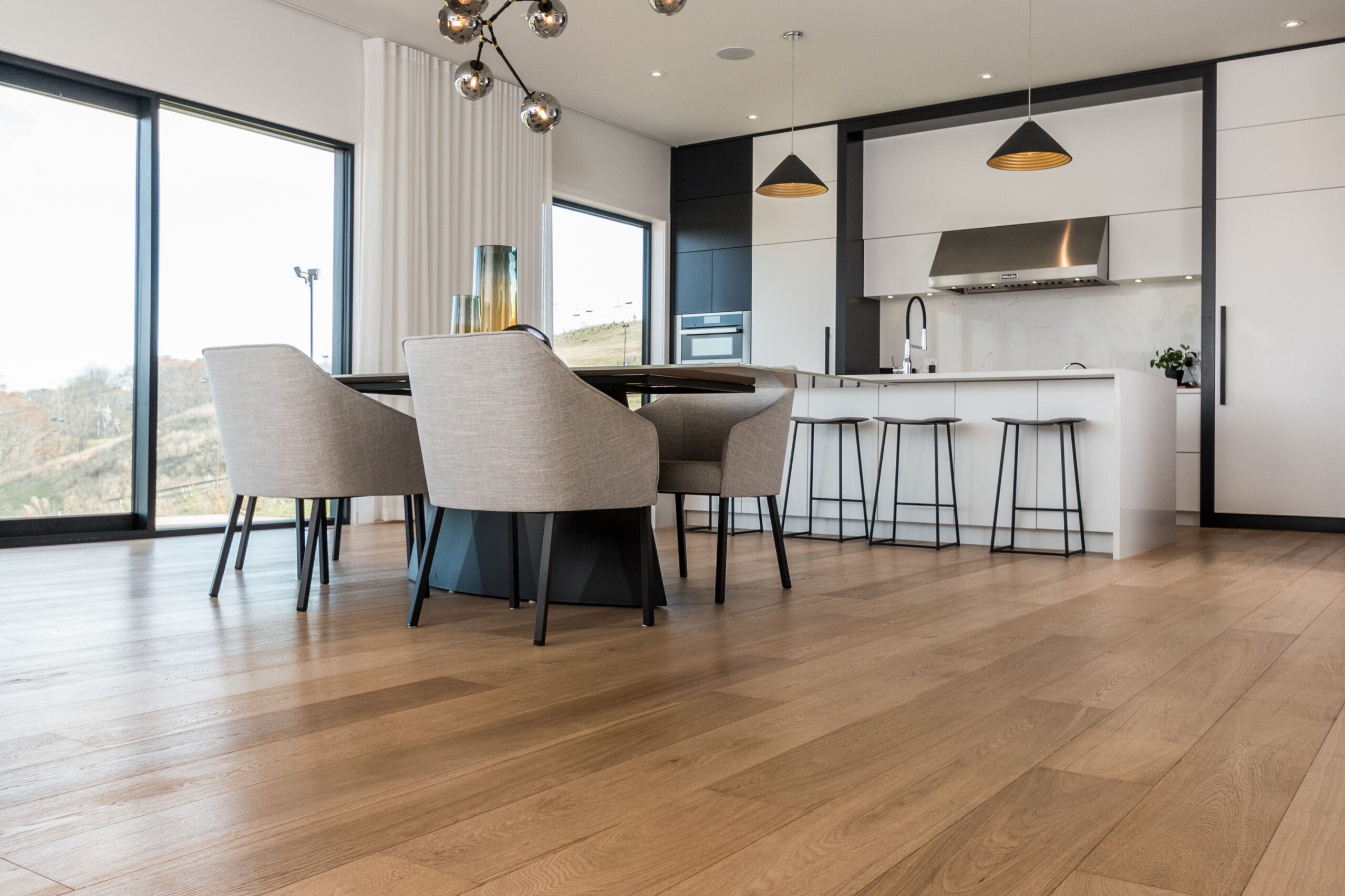 We manage every step: furniture moving, old flooring removal, surface preparation, installation, trimming, and cleanup.